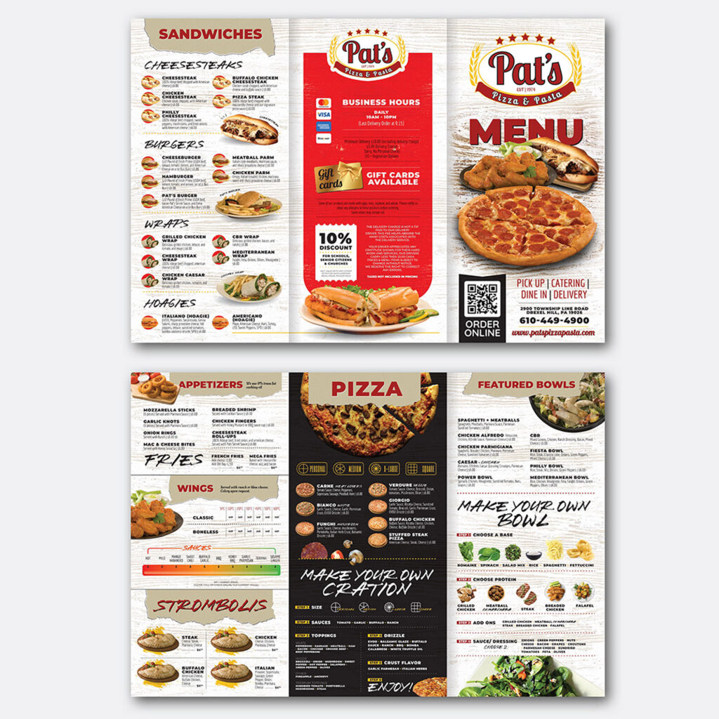 Our menu designs combine aesthetics with clarity, ensuring that your customers can easily find what they’re looking for while being tempted by your chef’s creations. From layout to typography, every element of our menu design is strategically placed to enhance the dining experience and encourage more orders.